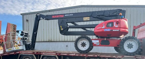 This self-propelled articulating, 4 wheel drive, rough terrain boom lift can carry 2 people (230kg) in the basket and comes with power to platform. It has a working height of 20.37m, and an outward reach of 12m; it is 2.4m wide, 8.42m long and weighs 10T. This machine has greater upward and outward reach, making it suitable for an even wider variety of jobs.