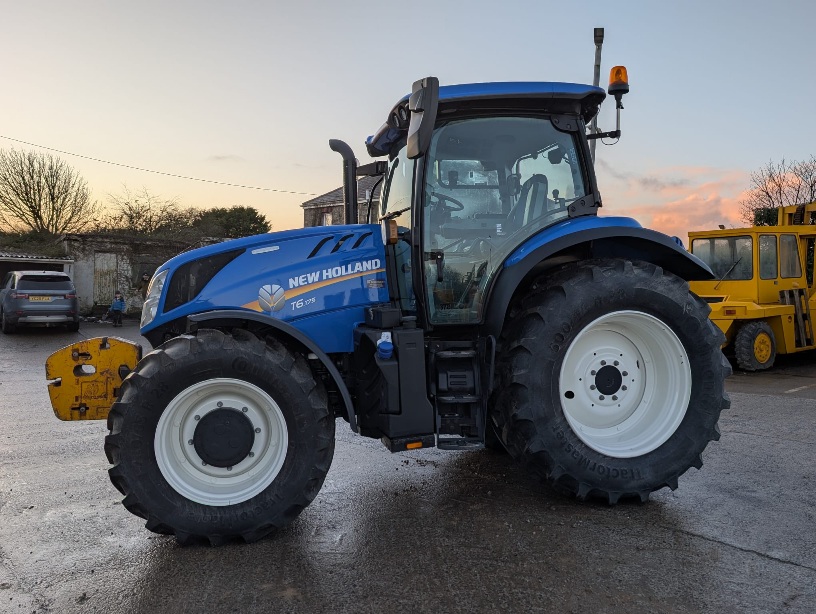 This modern (2024) New Holland T6.175 Dyanmic Command tractor is 4WD 4-cylinder with 145-175 hp, capable of 50 kmph.